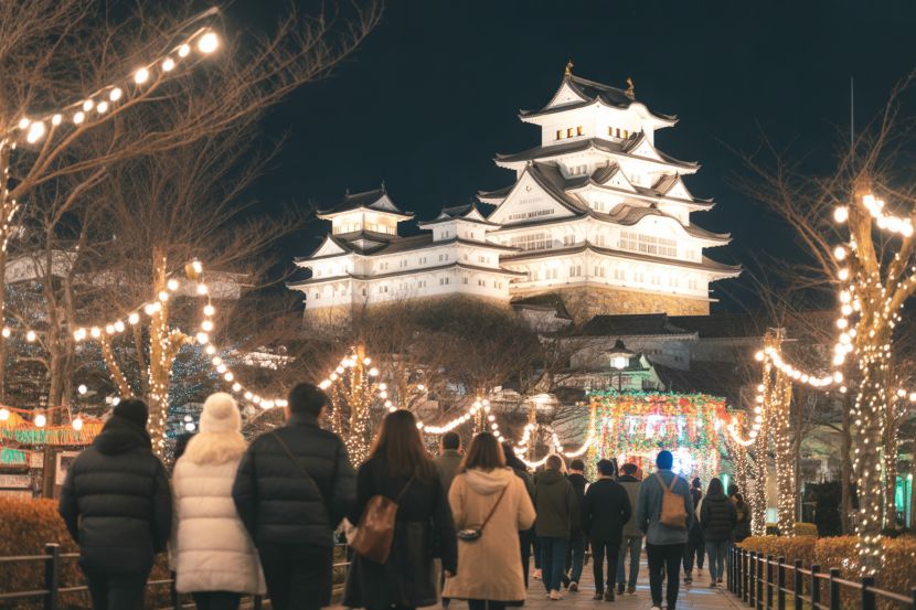Himeji City introduces magical winter events including Himeji Castle light art, holiday illuminations, a Christmas market, and more, offering visitors a festive experience this season.